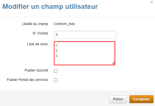 •Type de dossier, Informations complémentaires - [Amélioration] - version 5.5.100 : possibilité de modifier les valeurs d'un champ complémentaire de type liste. |