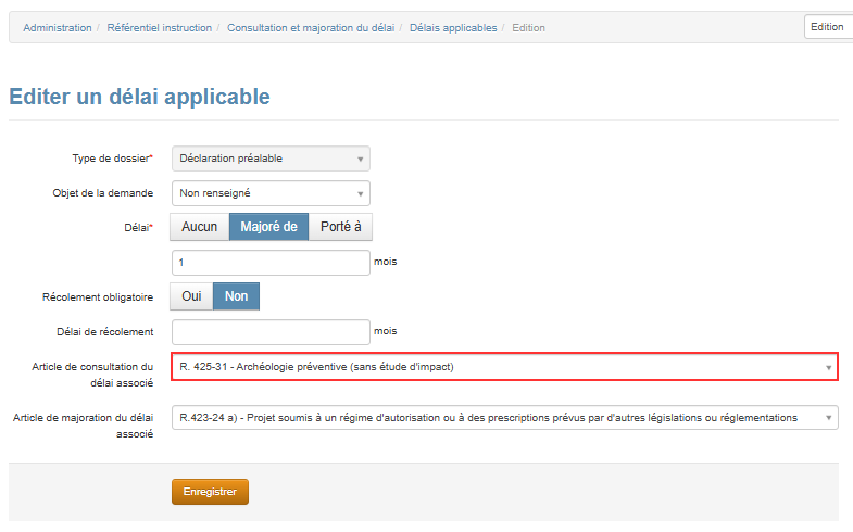 •Critère d'instruction - Consultation et majoration du délai - [Correction] - version 5.5.1 : correction de l'article de consultation associé au critère "Archéologie préventive (sans étude d'impact)". |