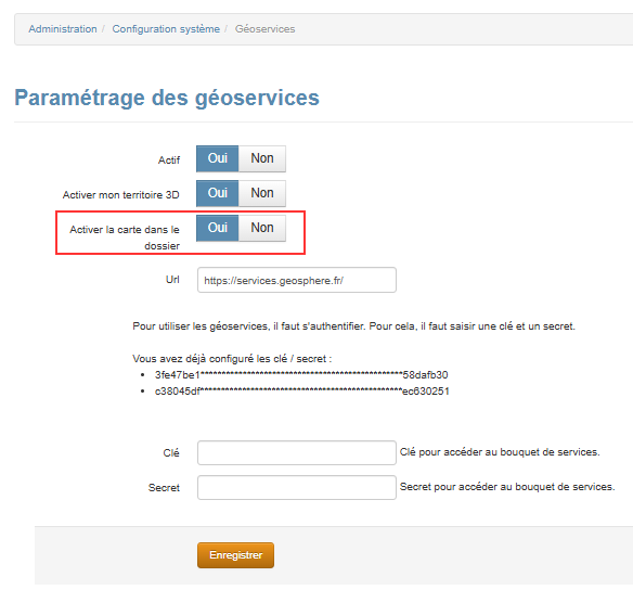•Géoservices - [Amélioration] - version 5.5.100 : ajout d'un nouveau paramètre permettant d'activer la carte dans la fiche dossier (formulaire Désignation du terrain).