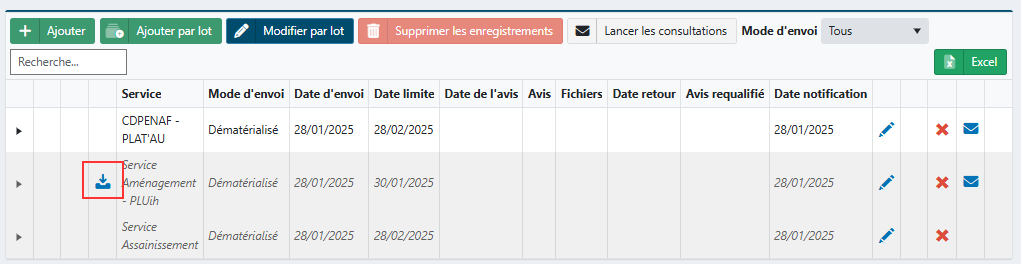•Réception d'une consultation, nouvel icône - [Amélioration] - version 5.5.1 : nouvel icône indiquant qu'il s'agit d'une demande de consultation via PLAT'AU et pour laquelle une réponse est attendue. |