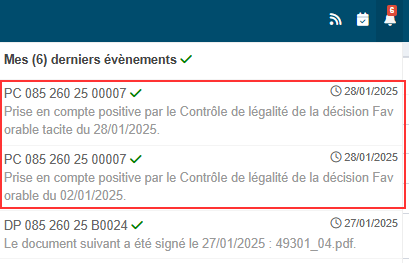 •Réception d'une PEC+ et évènement associé - [Amélioration] - version 5.5.1 : ajout de nouveaux évènements vous permettant d'être notifier lors de l'arrivée d'une PEC+ du contrôle de la légalité. |